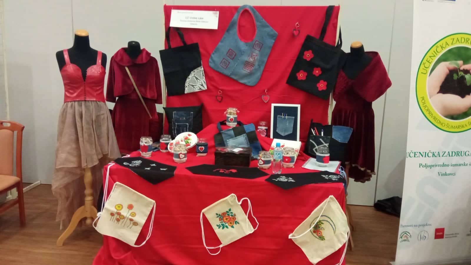Organizirali smo akciju skupljanja starih traper hlača, košulja, haljina u našoj školi te od njih izradili razne torbe, ruksake, nadstolnjake, jastučiće, privjeske, organizatore u obliku slike, te ukrašavali odbačene staklenke za daljnju uporabu.