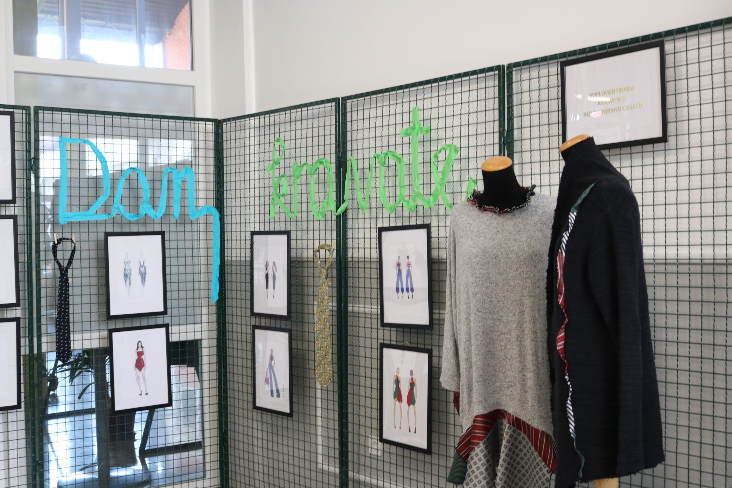 Svake godine u našoj Školi 18. listopada obilježavamo svjetski Dan kravate s određenom tematikom. Kako je trend u svijetu održivo i digitalno, tako je naša ovogodišnja tema izložbe “Implementirana kravata u redizajniranu odjeću”. Učenice zanimanja modni tehničar 2.b i 3.b razreda su nacrtale digitalne modne crteže inspirirane kravatom u rasterskoj i vektorskoj grafici za crtanje na poticaj nastavnica iz stručno teorijskih predmeta. Na krojačkim lutkama su bili postavljeni rabljeni odjevni predmeti s uklopljenim materijalima iskrojenih od kravata po uzoru na japanske dizajnere kroja. Paralelno izložbi, prezentaciji učenica 4.b razreda i raznovrsnim modnim radionicama, učenici modni tehničari su u školskoj radionici izrađivali kravate i leptir mašne u sklopu nastave Izrada modnih proizvoda. Medijski smo bili popraćeni na novosti.hr, srednja.hr, Plava Vinkovačka televizija na kojoj smo i gostovali u emisiji Dnevni divan. Izuzetno smo ponosni na naše kreativne učenice i njihove nastavnice u sektoru Mode, tekstila i kože. Ljubica Kolarević, izvrsna savjetnica